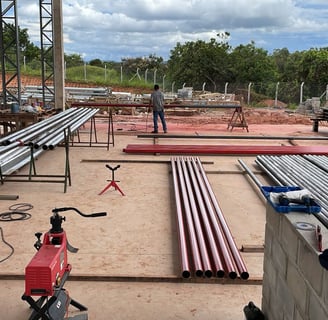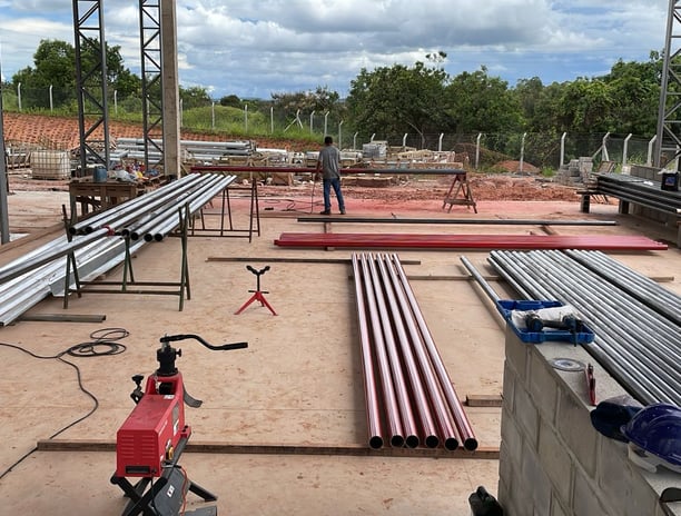 Utilizamos tubulações acopladas por ranhuras e roscas, uma tecnologia que acelera a execução das obras, garantindo maior agilidade, eficiência e um ambiente sempre limpo.
